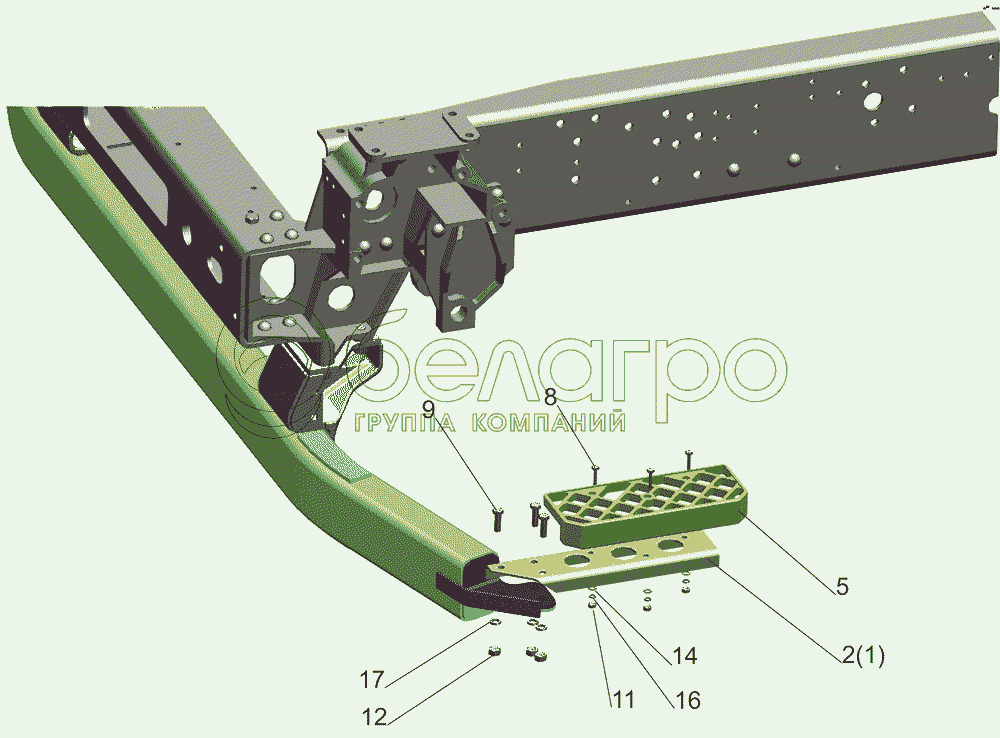 Каталог запасных частей к технике: МАЗ-5550V3 (V5). Установка нижней подножки 544008-8400016-010