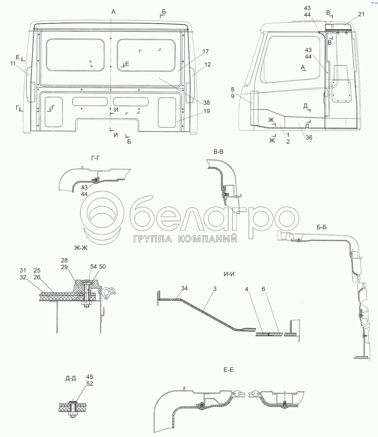 Каталог запасных частей к технике: МАЗ-5550V3 (V5). Установка обивок и ковриков 6501-5000100