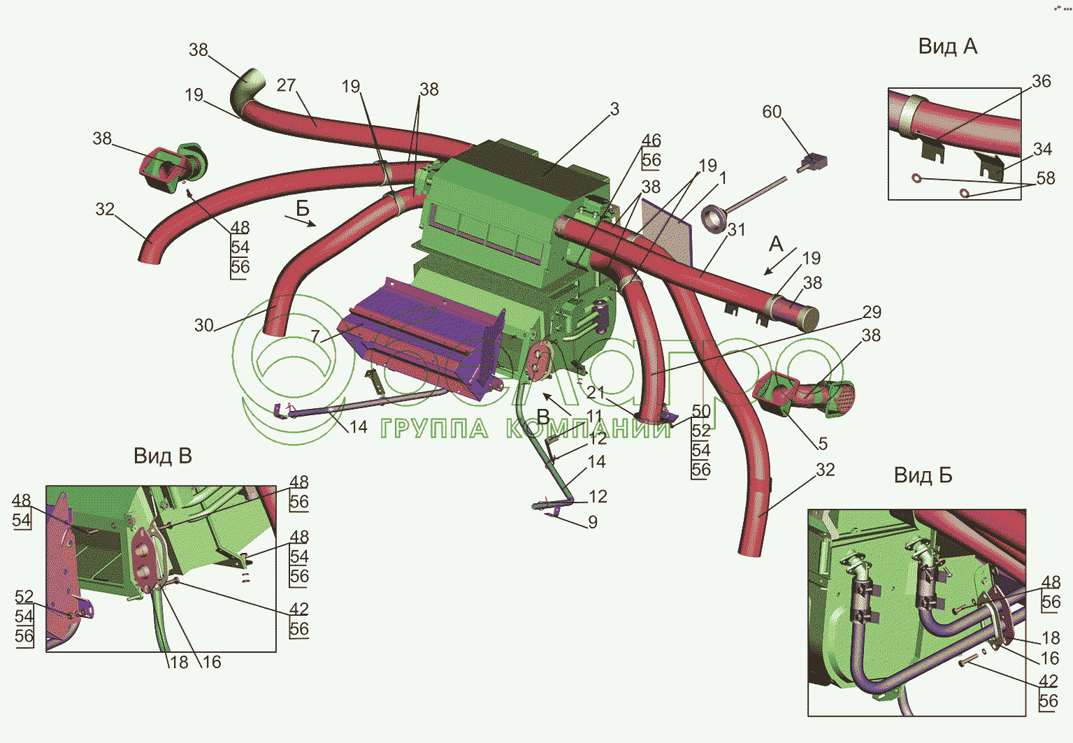 Каталог запасных частей к технике: МАЗ-5550V3 (V5). Установка отопителя 631019-8100001-010