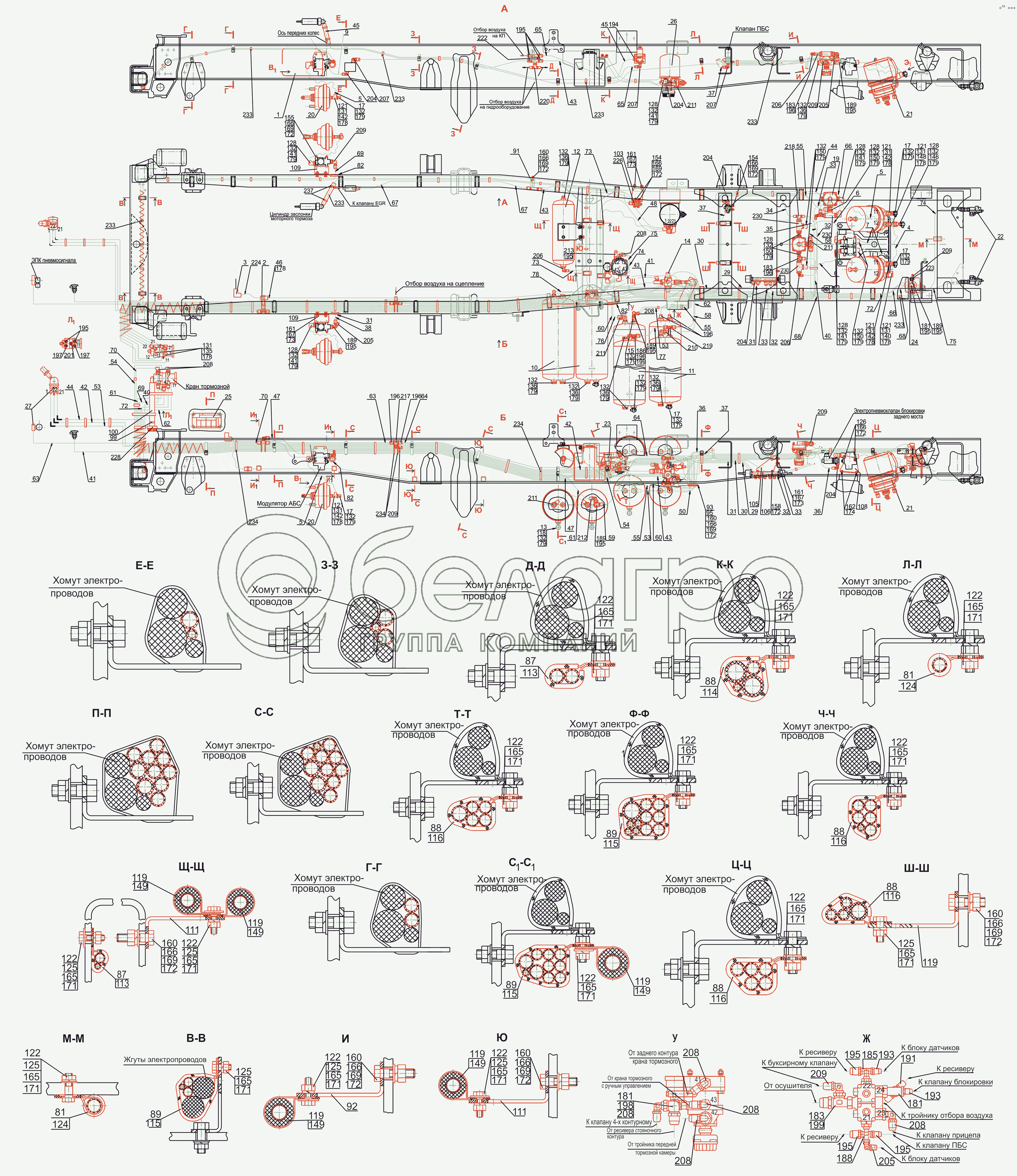 Каталог запасных частей к технике: МАЗ-5550V3 (V5). Установка пневмотормозов 5550V5-3500003-000