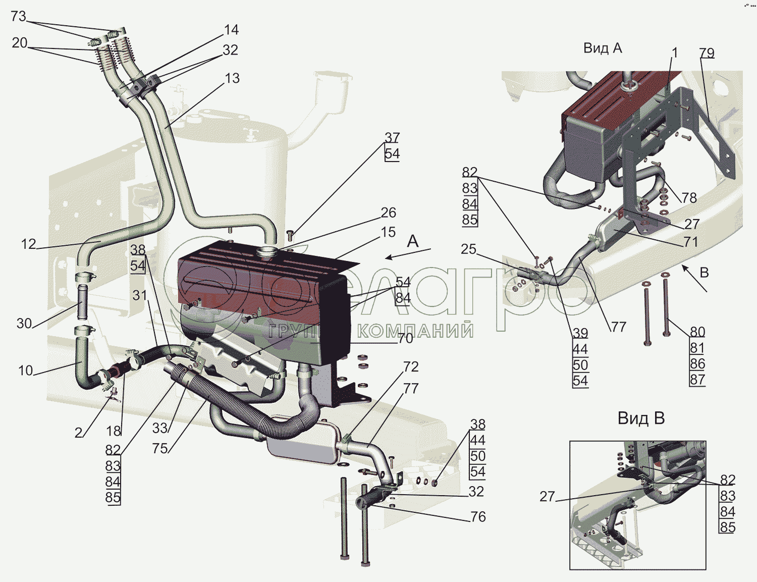 Каталог запасных частей к технике: МАЗ-5550V3 (V5). Установка подогревателя 555035-1015001-010