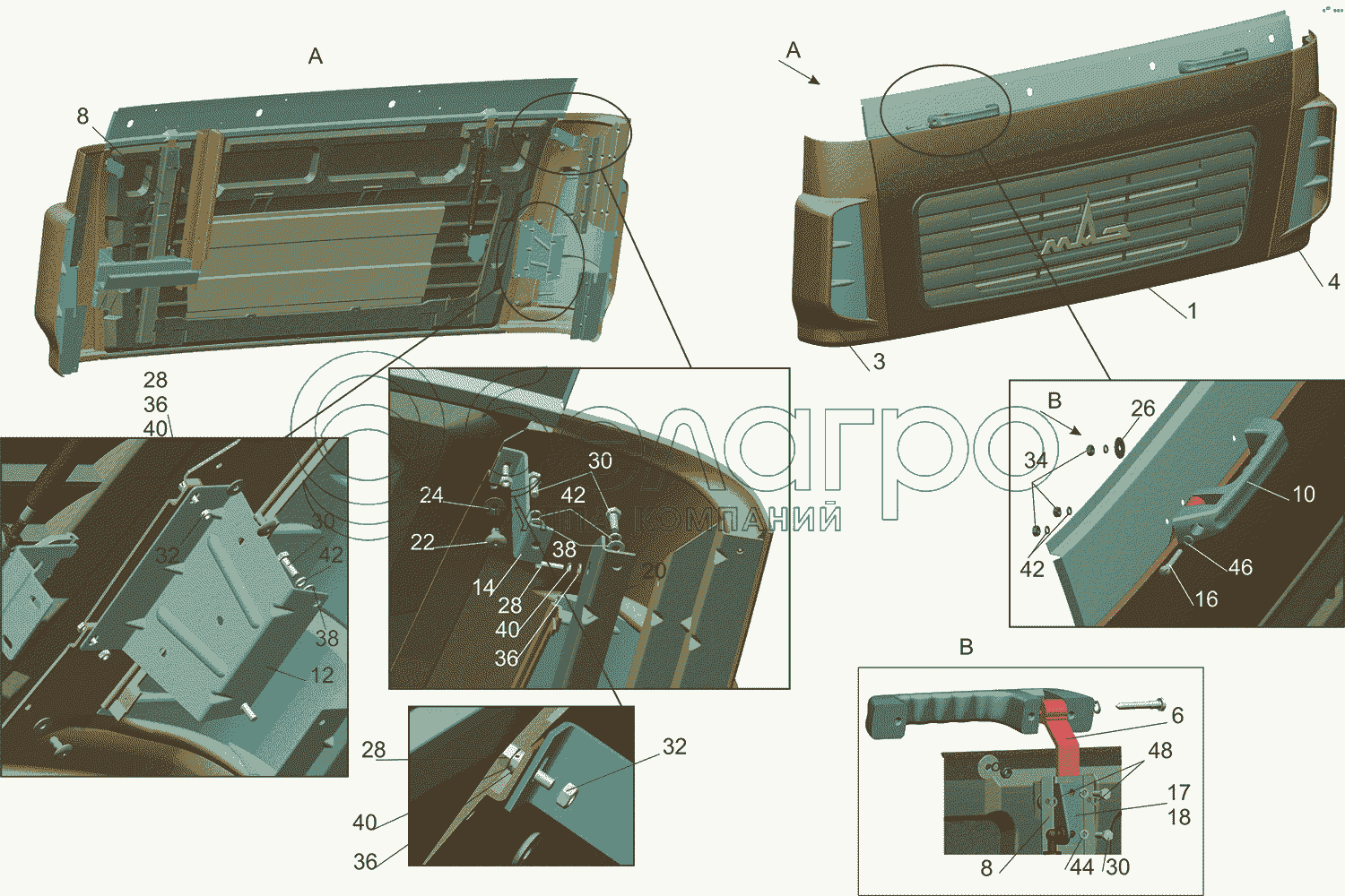 Каталог запасных частей к технике: МАЗ-5550V3 (V5). Установка щитков 6431-8400014-000