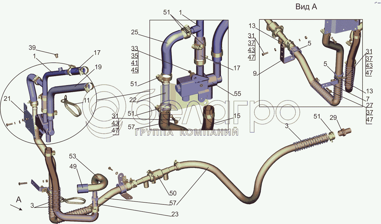 Каталог запасных частей к технике: МАЗ-5550V3 (V5). Установка шлангов отопителя 5340V4-8100006-030