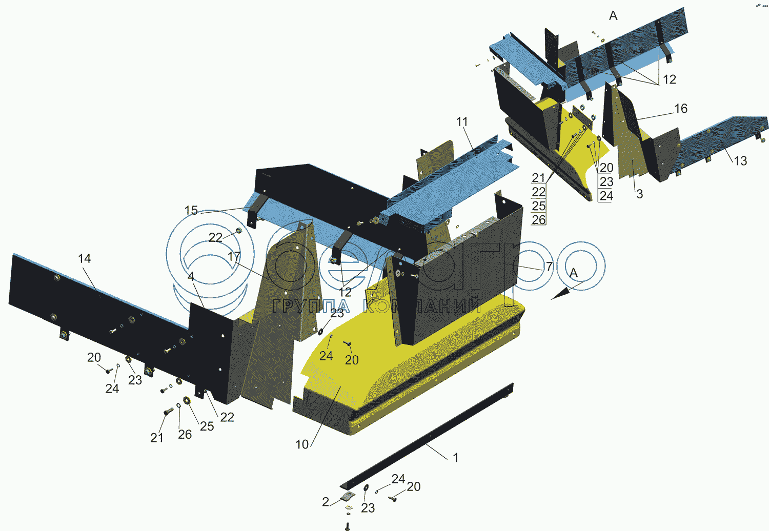 Каталог запасных частей к технике: МАЗ-5550V3 (V5). Установка шумоизоляционных экранов 555003-1061003-005