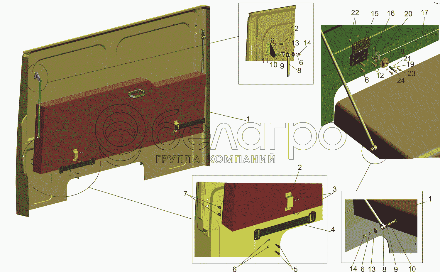 Каталог запасных частей к технике: МАЗ-5550V3 (V5). Установка спального места 6501-8200010