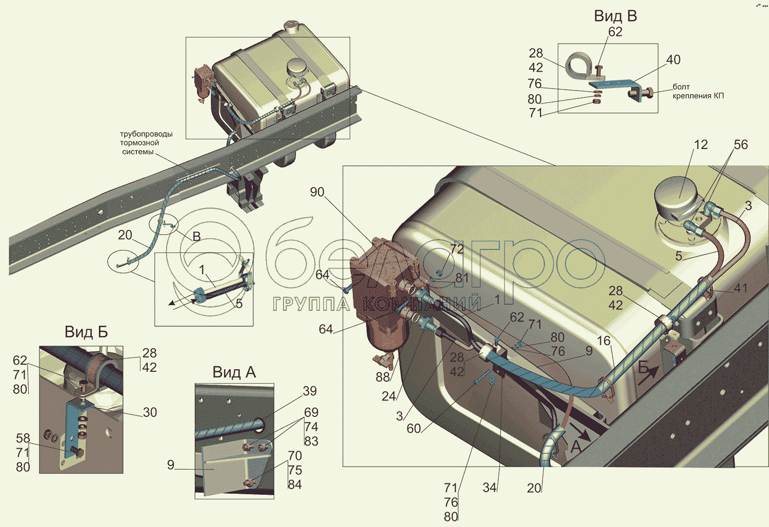 Каталог запасных частей к технике: МАЗ-5550V3 (V5). Установка топливопроводов 5550V5-1104002-010