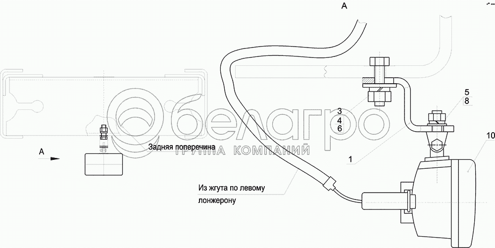 Каталог запасных частей к технике: МАЗ-5550V3 (V5). Установка заднего противотуманного фонаря 5550-3700012
