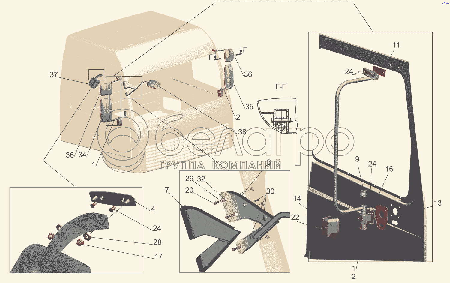 Каталог запасных частей к технике: МАЗ-5550V3 (V5). Установка зеркал 6430-8200005-010