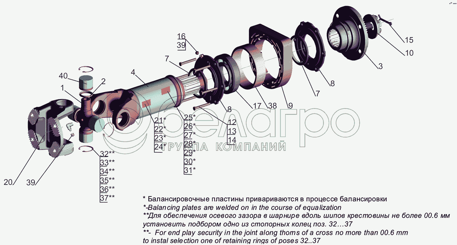 Каталог запасных частей к технике: МАЗ-5550V3 (V5). Вал карданный промежуточный 6312V5-2202010-000