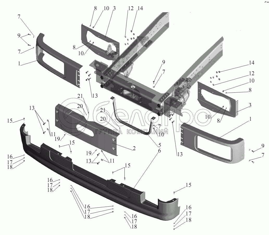 Каталог запасных частей к технике: МАЗ-555102, 5551А2. Крепление бампера