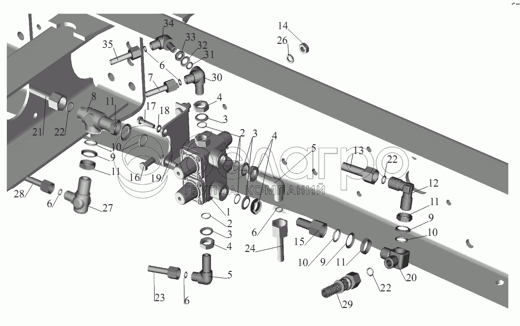 Каталог запасных частей к технике: МАЗ-555102, 5551А2. Крепление четырехконтурного клапана 5551-3515002