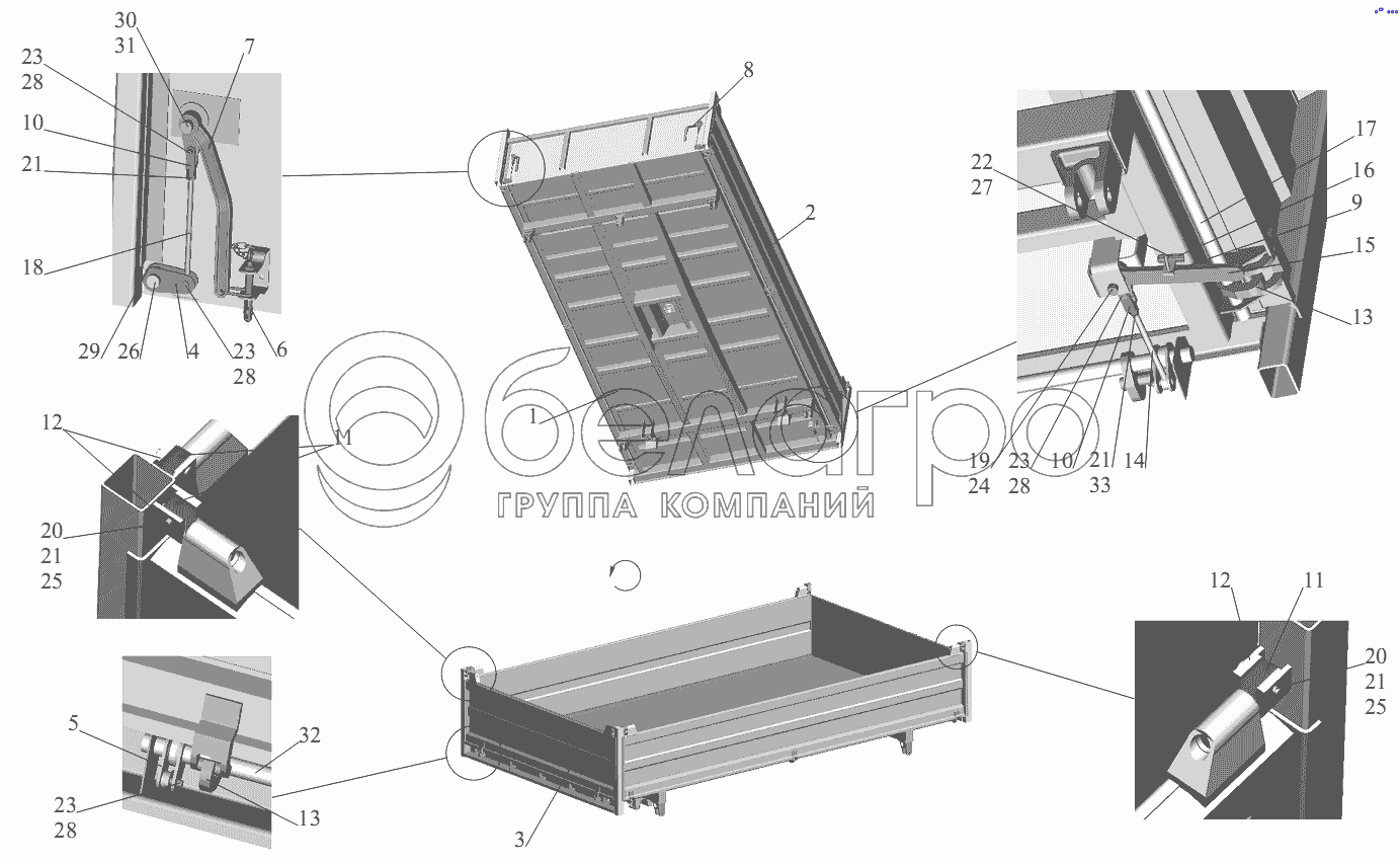 Установка платформы с трехсторонней разгрузкой 555102-8500002-025