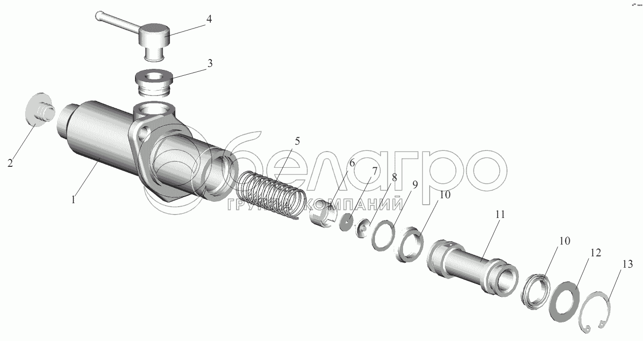 Каталог запасных частей к технике: МАЗ-555102, 5551А2. Цилиндр подпедальный 6430-1602510