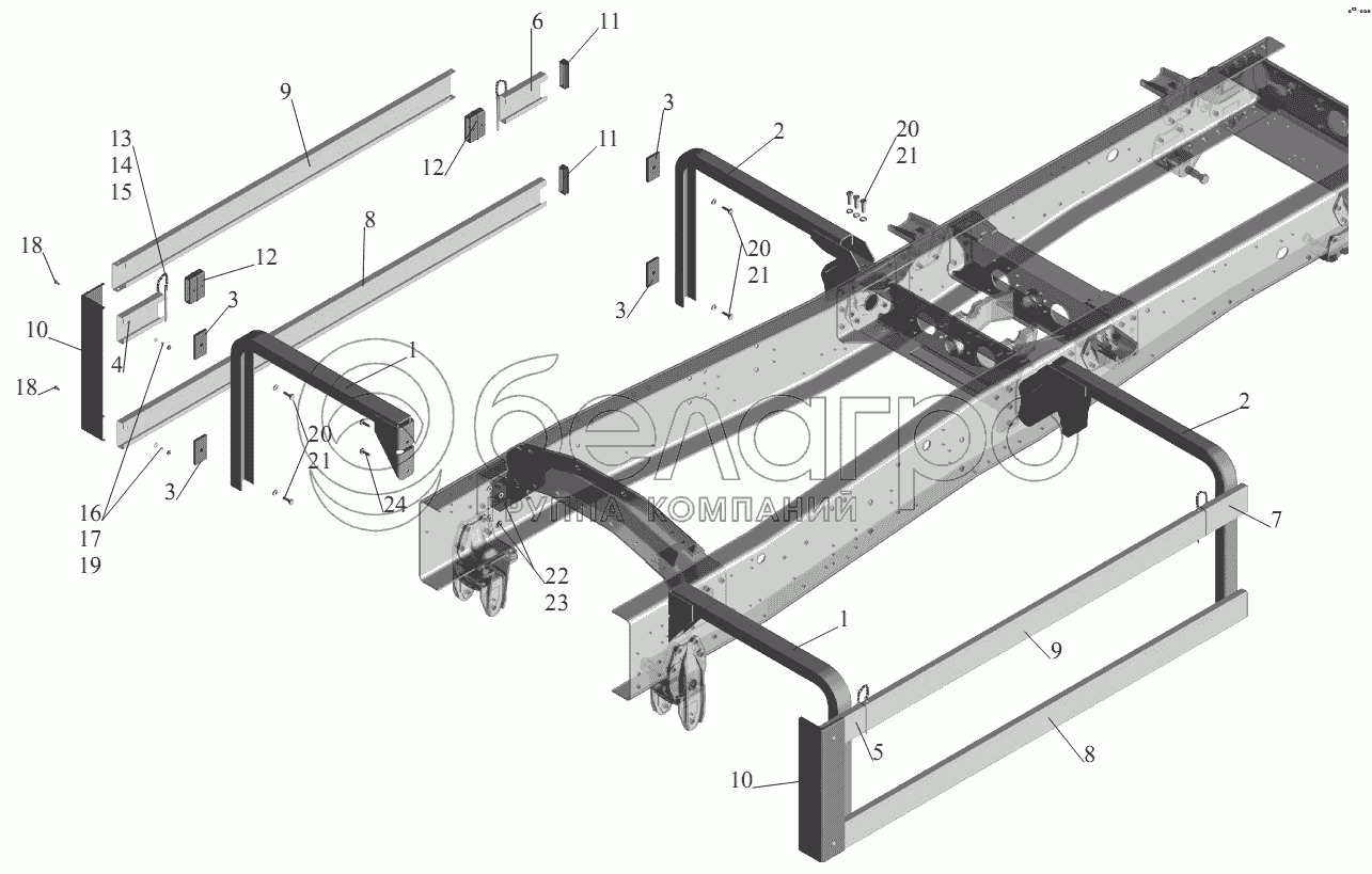 Каталог запасных частей к технике: МАЗ-555102, 5551А2. Установка бокового ограждения 555102-2800040