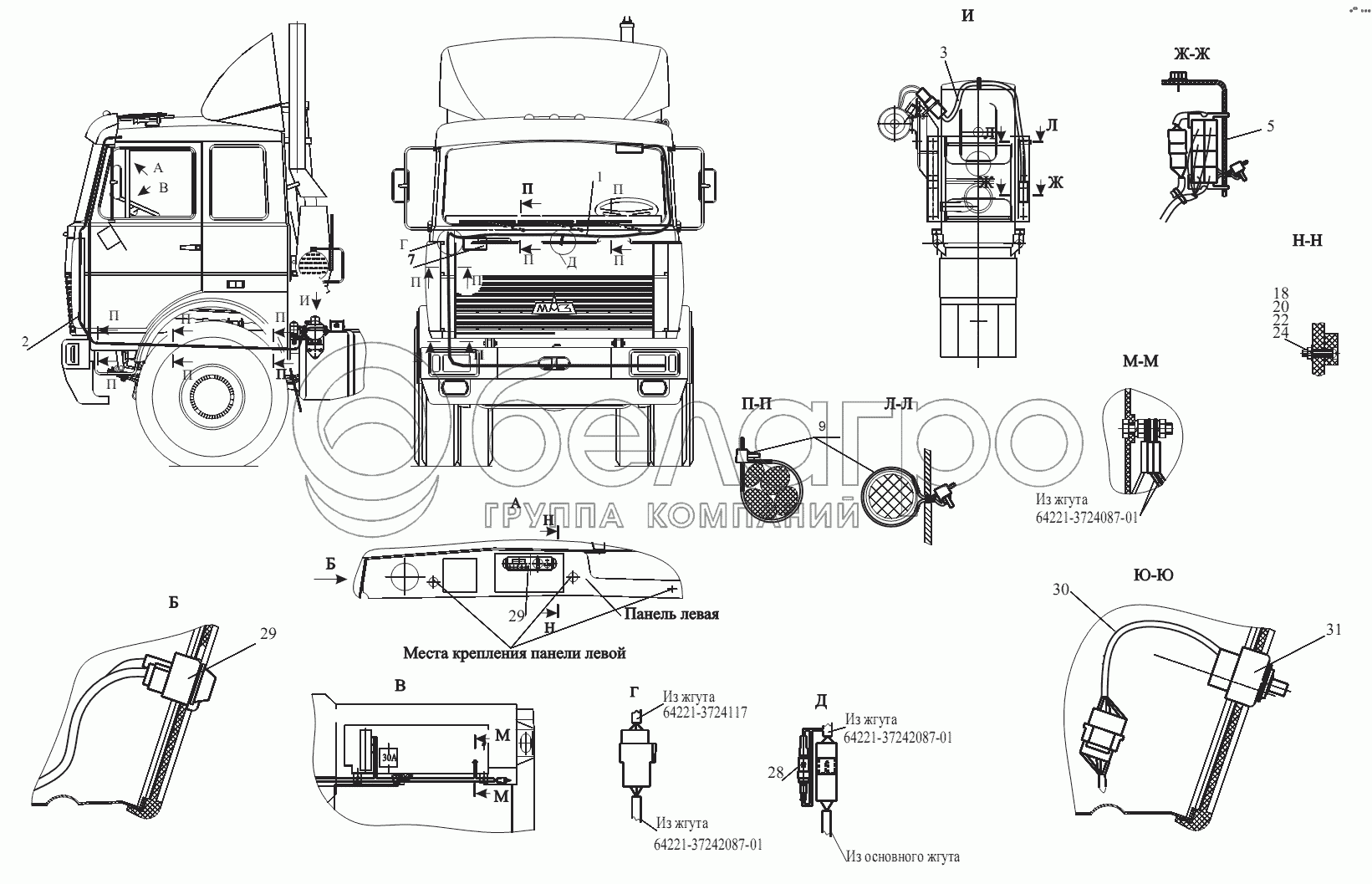Каталог запасных частей к технике: МАЗ-555102, 5551А2. Установка электрооборудования подогревателя 64221-3700085