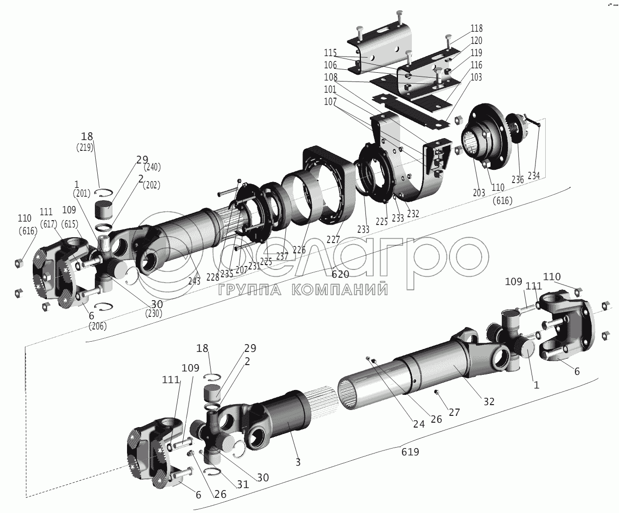 Каталог запасных частей к технике: МАЗ-555102, 5551А2. Установка карданной передачи 555140-2200000-010
