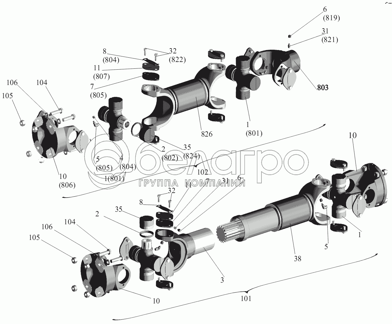 Каталог запасных частей к технике: МАЗ-555102, 5551А2. Установка карданных валов 555102-2200000-020