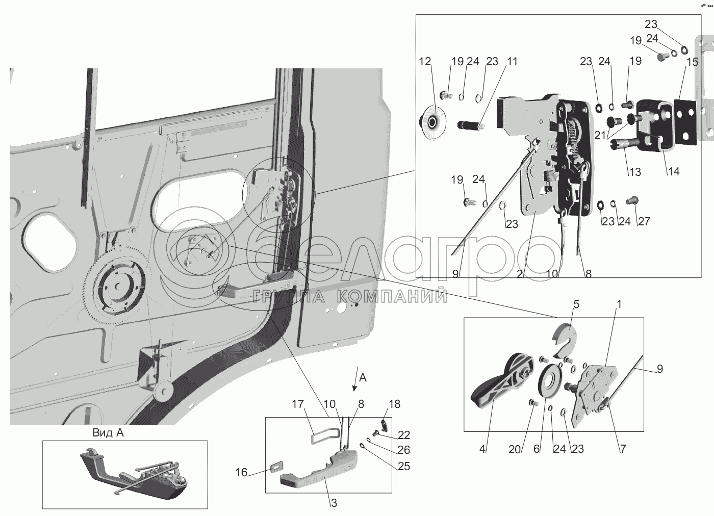 Каталог запасных частей к технике: МАЗ-555102, 5551А2. Установка наружной ручки и замка двери