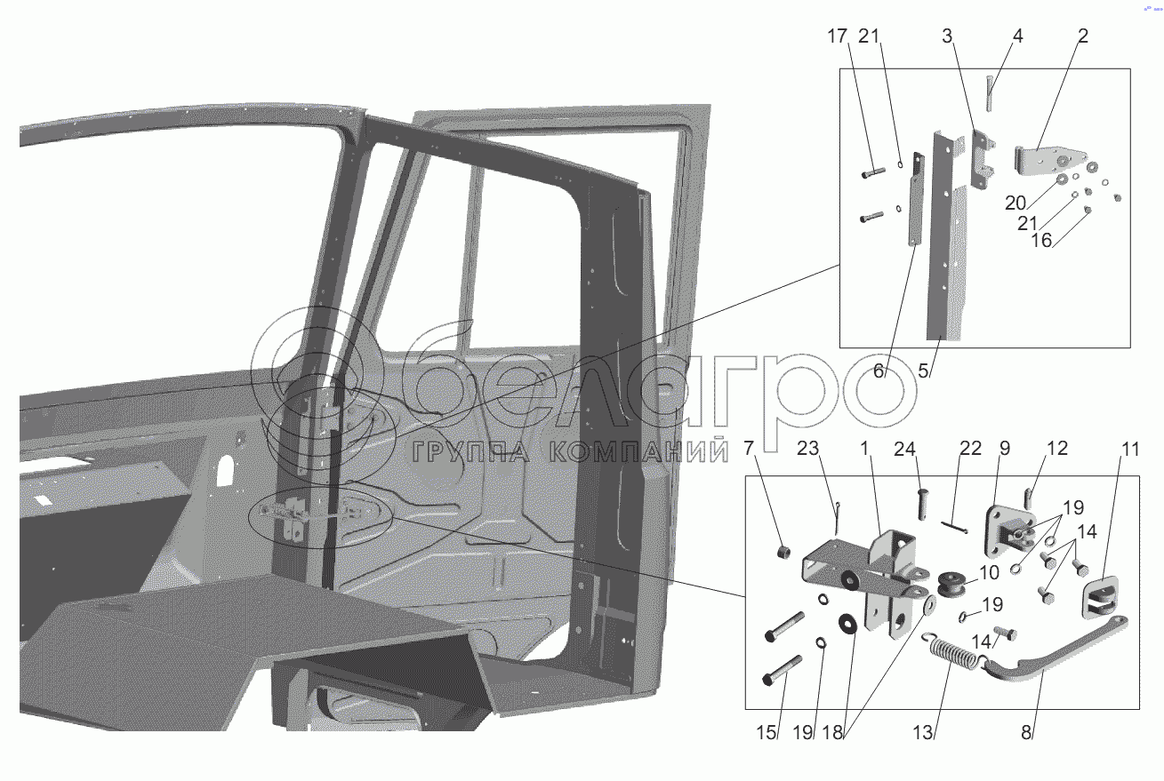 Каталог запасных частей к технике: МАЗ-555102, 5551А2. Установка ограничителя и петель двери