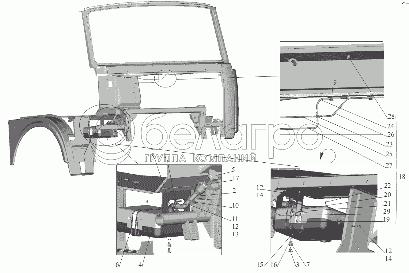 Каталог запасных частей к технике: МАЗ-555102, 5551А2. Установка омывателя