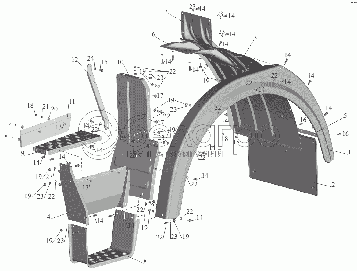 Каталог запасных частей к технике: МАЗ-555102, 5551А2. Установка оперения на малую кабину
