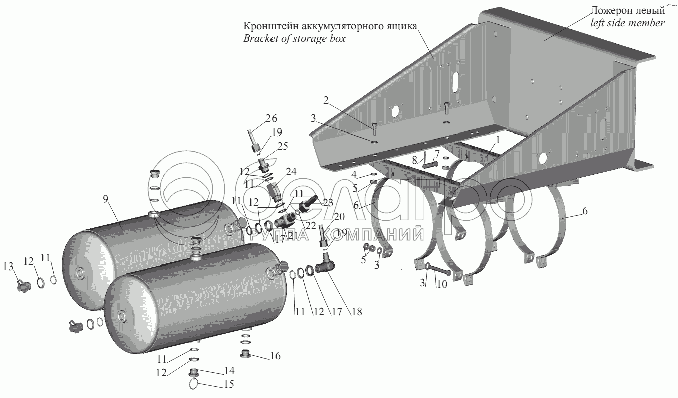 Каталог запасных частей к технике: МАЗ-555102, 5551А2. Установка ресиверов 555102-3513005