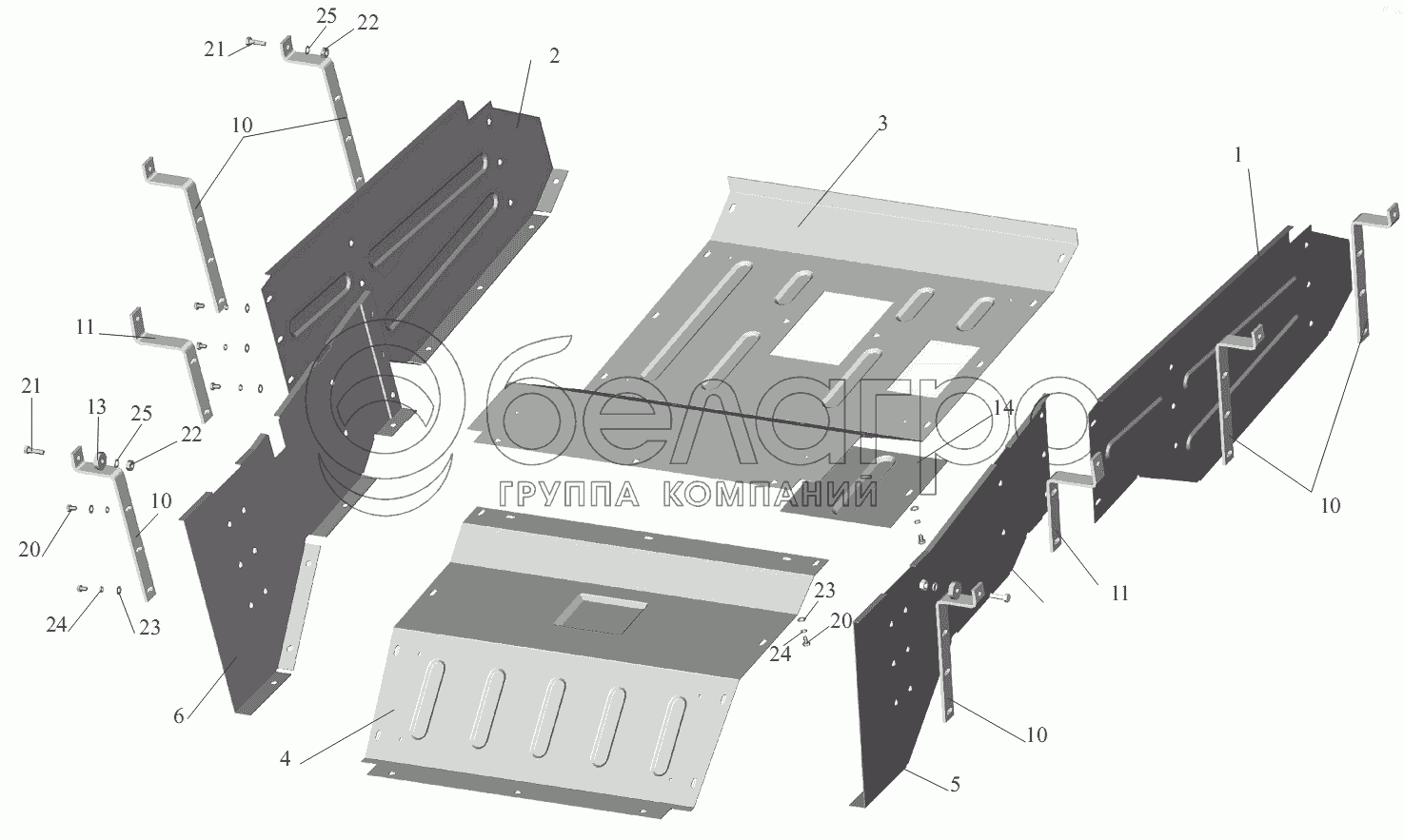 Каталог запасных частей к технике: МАЗ-555102, 5551А2. Установка шумоизоляционных экранов 555102-1061004
