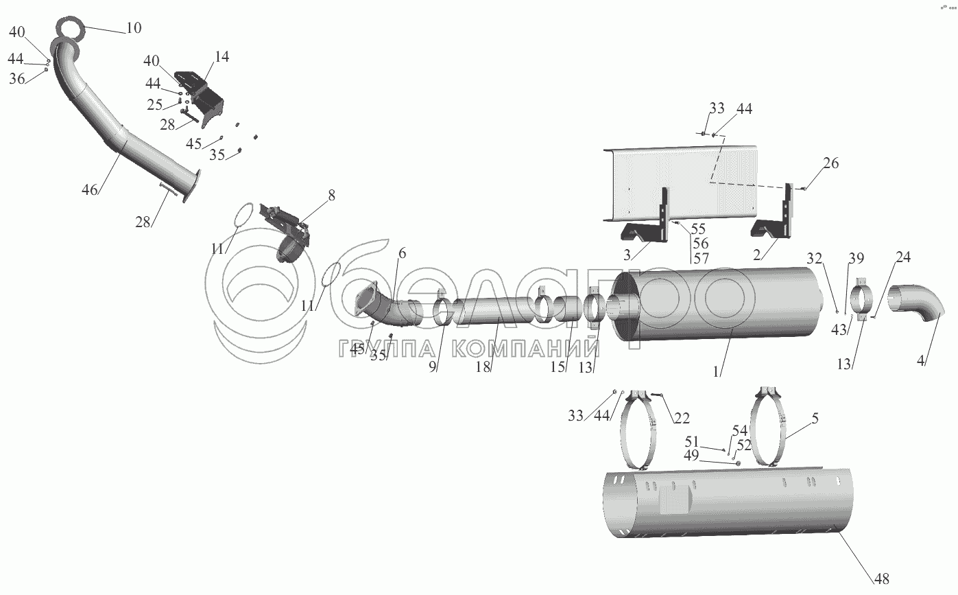 Каталог запасных частей к технике: МАЗ-555102, 5551А2. Установка системы выпуска отработавших газов