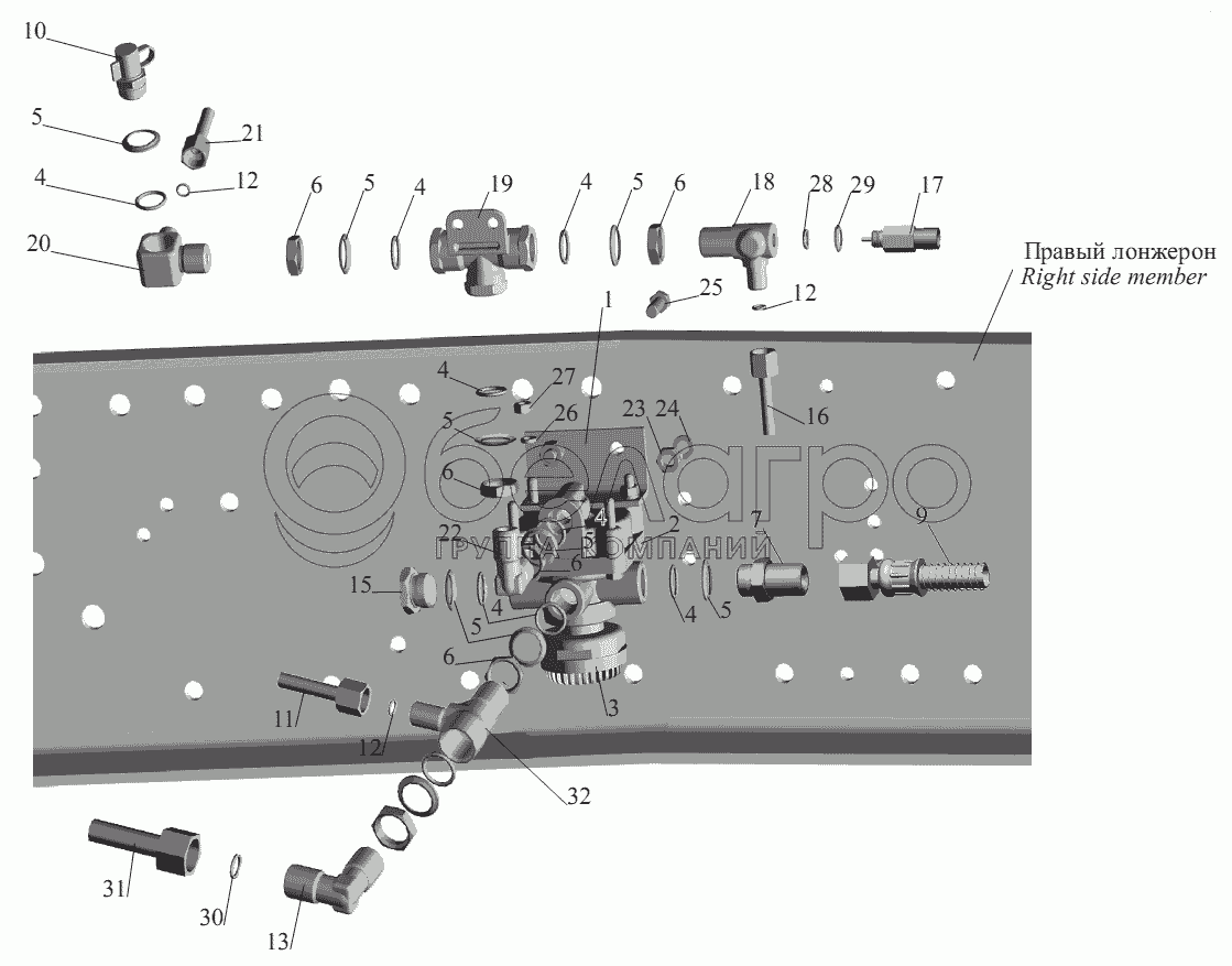 Каталог запасных частей к технике: МАЗ-555102, 5551А2. Установка ускорительного клапана 5432-3518004
