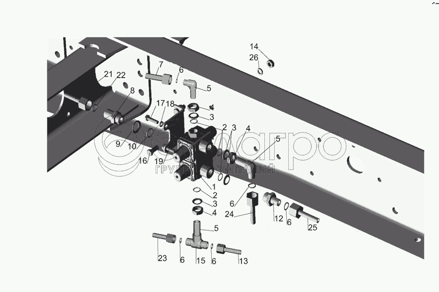 Каталог запасных частей к технике: МАЗ-555142. Крепление четырехконтурного клапана 5551-3515002