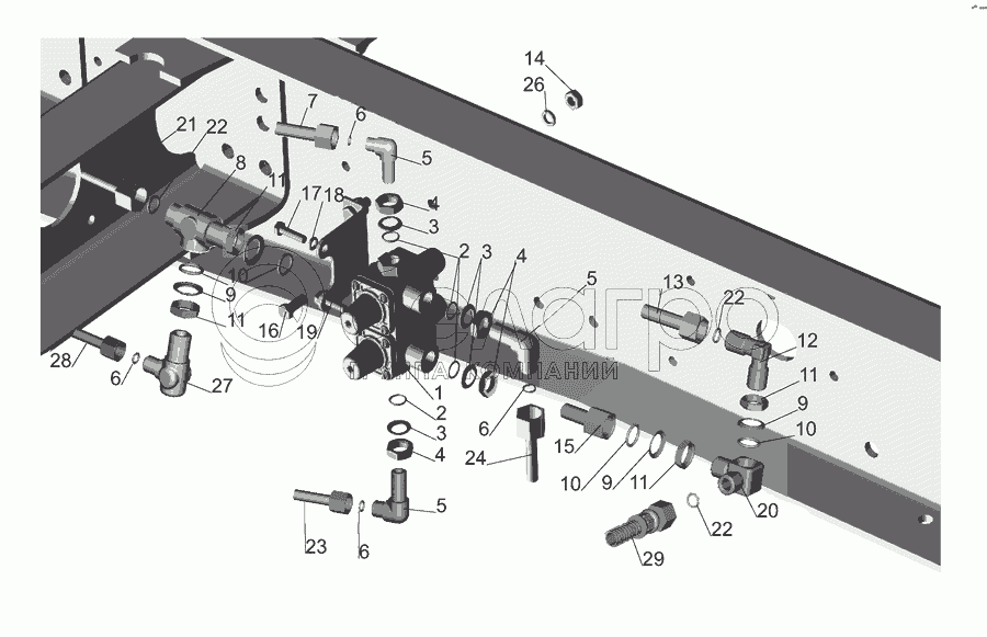 Каталог запасных частей к технике: МАЗ-555142. Крепление четырехконтурного клапана 5551-3515002