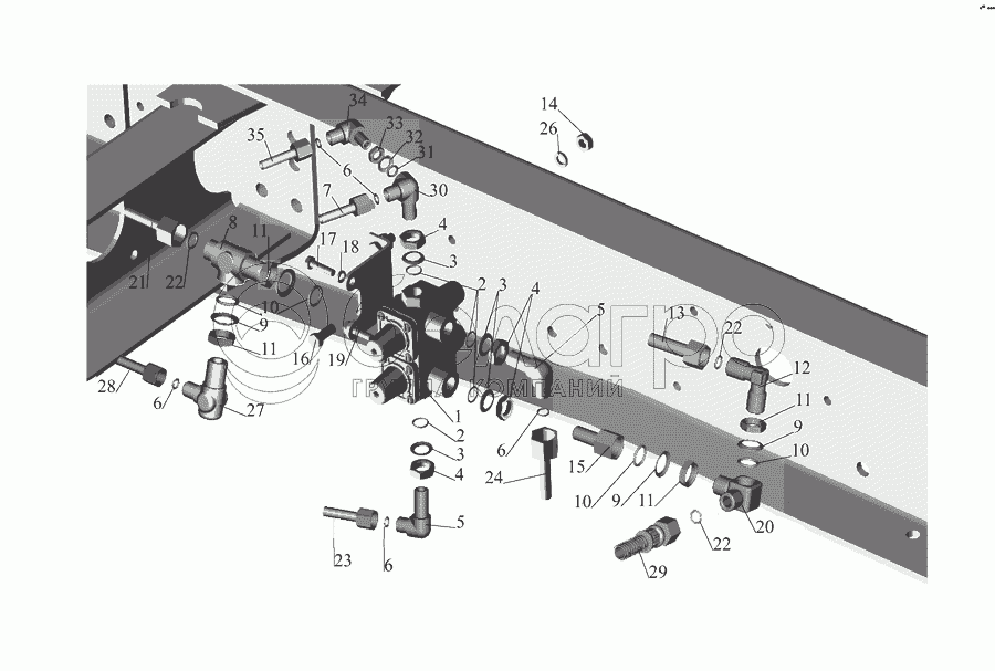 Каталог запасных частей к технике: МАЗ-555142. Крепление четырехконтурного клапана 5551-3515002