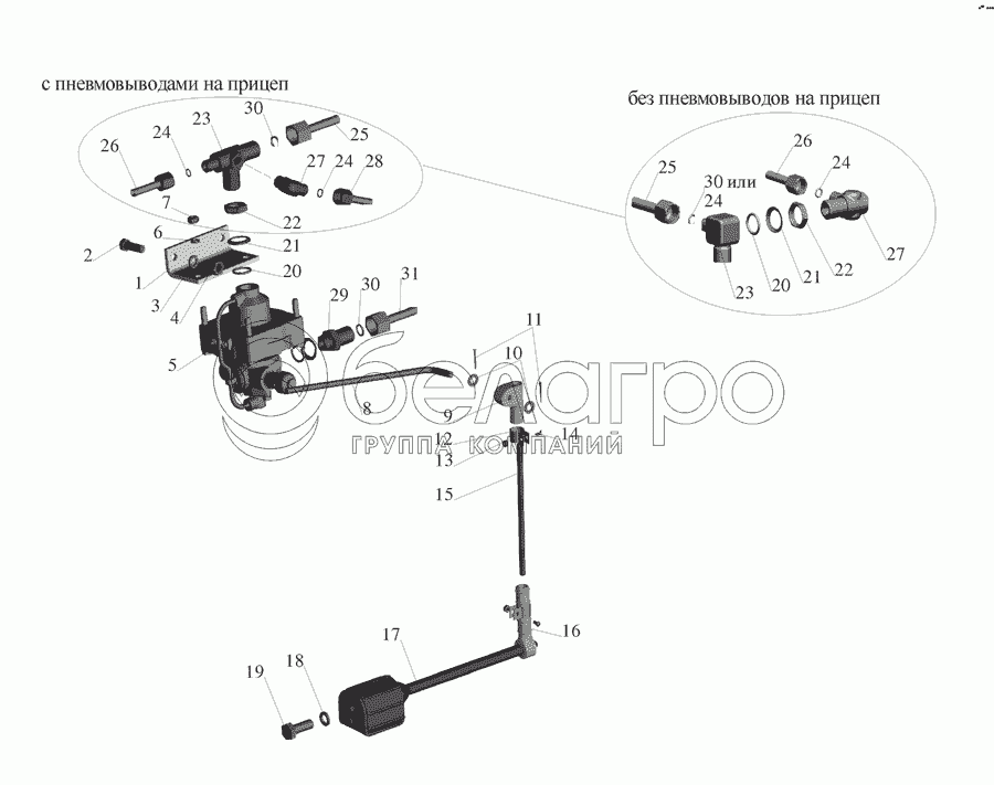 Установка клапана управления тормозами прицепа и присоединительной арматуры