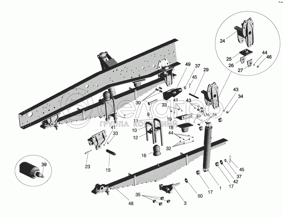 Каталог запасных частей к технике: МАЗ-555142. Подвеска передняя 5551-2900001-10