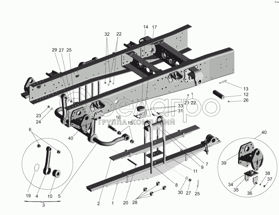 Каталог запасных частей к технике: МАЗ-555142. Подвеска задняя 5551-2900002-10
