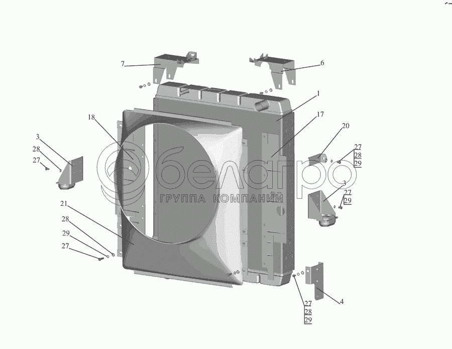 Каталог запасных частей к технике: МАЗ-555142. Радиатор с кожухом 555142-1301009-001