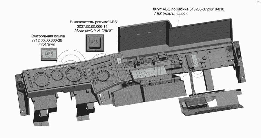 Каталог запасных частей к технике: МАЗ-555142. Расположение элементов электронных систем в кабине автомобиля
