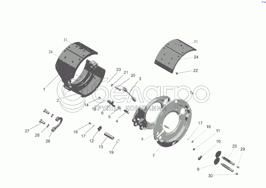 Каталог запасных частей к технике: МАЗ-555142. Тормоз колеса заднего моста