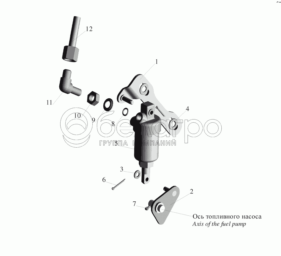 Каталог запасных частей к технике: МАЗ-555142. Цилиндр останова двигателя 543205-3570004