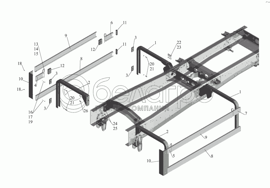 Каталог запасных частей к технике: МАЗ-555142. Установка бокового ограждения 555142-2800040