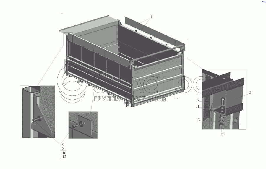 Каталог запасных частей к технике: МАЗ-555142. Установка дополнительных бортов 555103-8500019-055