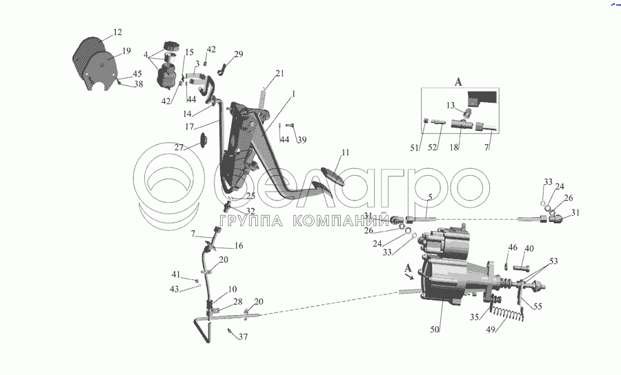 Каталог запасных частей к технике: МАЗ-555142. Установка механизма управления сцеплением