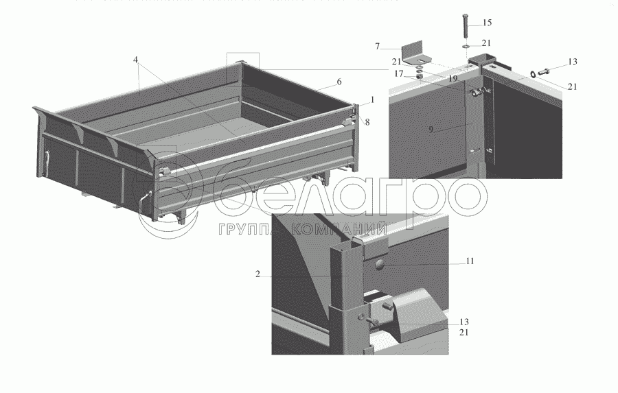 Каталог запасных частей к технике: МАЗ-555142. Установка надставных бортов 555102-8500012