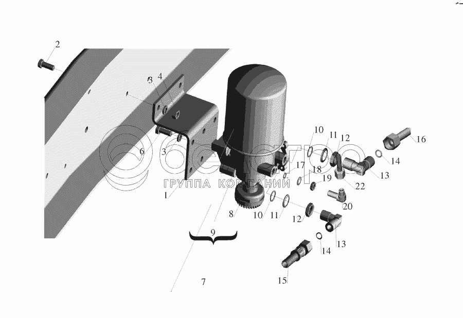 Каталог запасных частей к технике: МАЗ-555142. Установка осушителя воздуха