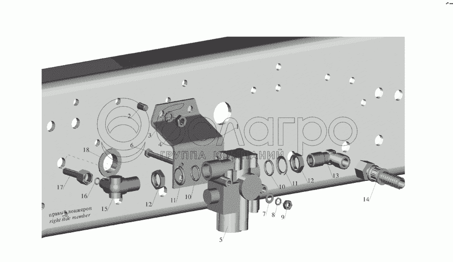 Каталог запасных частей к технике: МАЗ-555142. Установка передних модуляторов и присоединительной арматуры