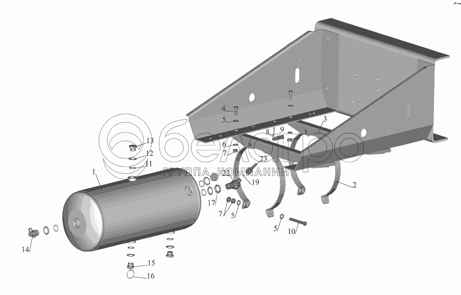 Каталог запасных частей к технике: МАЗ-555142. Установка ресивера 5551-3513005-10