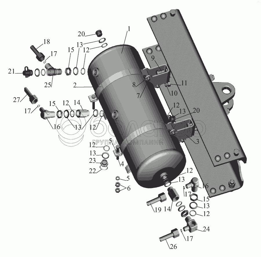 Каталог запасных частей к технике: МАЗ-555142. Установка ресивера 6422-3513006-30