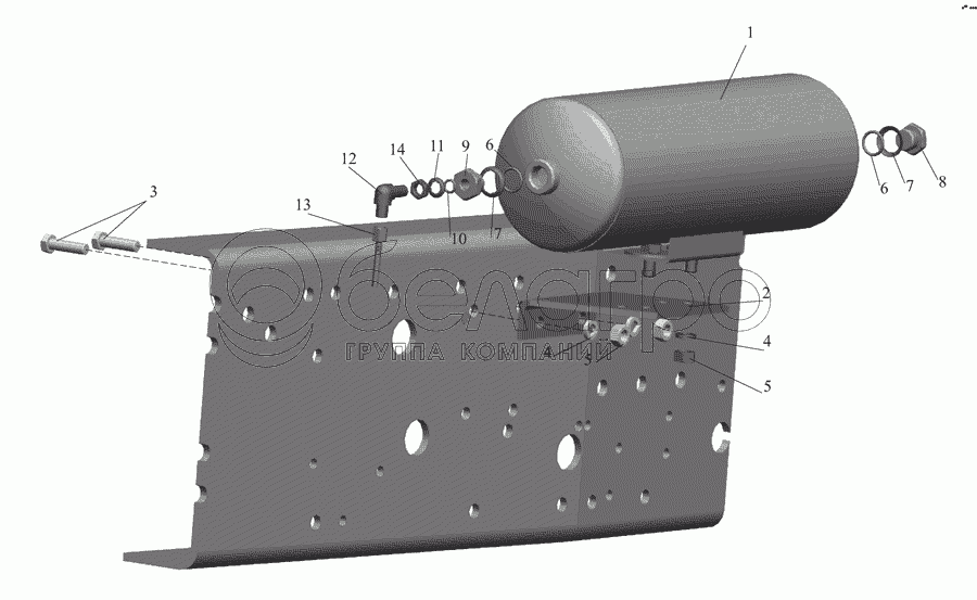 Каталог запасных частей к технике: МАЗ-555142. Установка ресивера и присоединительной арматуры