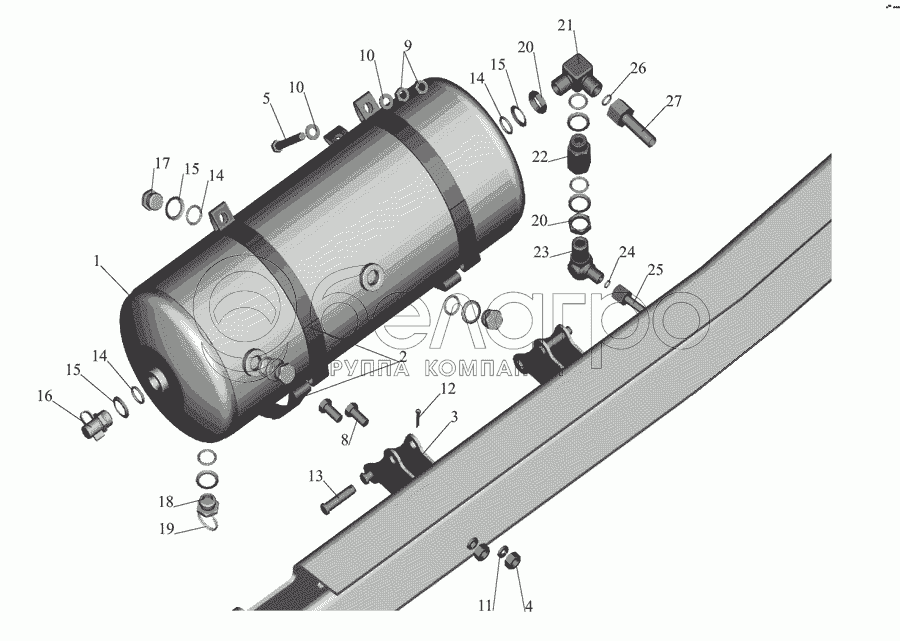 Каталог запасных частей к технике: МАЗ-555142. Установка ресиверов 555102-3513005