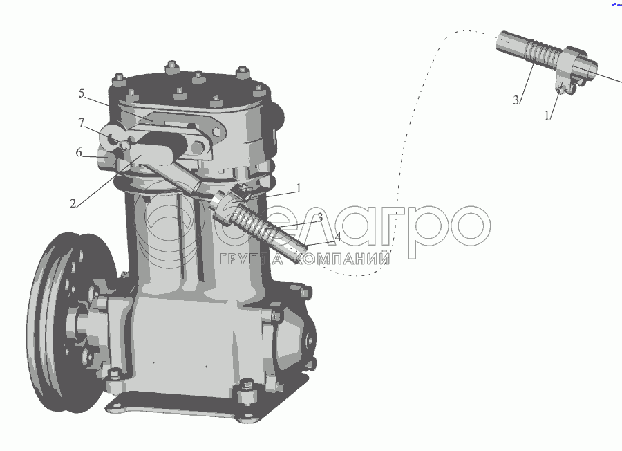 Каталог запасных частей к технике: МАЗ-555142. Установка шланга пневмокомпрессора